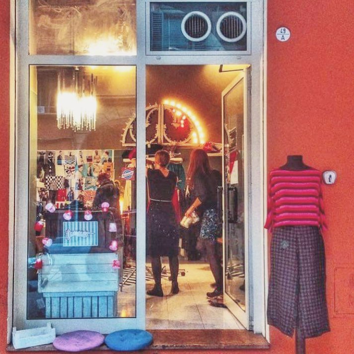 Just as you reach the top of Via San Vitale, with the Two Towers on your left, look right and enter the small Galleria Due Torri. If you want the raw, ultimate vintage experience, there you’ll find La casa della chiusura lampo (literally, “house of the zipper”). Mind you: it doesn’t sell vintage clothing but can actually fix a malfunction or two on your newly bought vintage coat. And it is a rétro universe in itself: working since 1938 (yep, you read that right), it is one of the few surviving “haberdasher’s shops” and will amaze you with its selection of buttons, zippers, fabric patches, tulle, ribbons and some other items you could only vaguely remember seeing in your grandma’s room. Micro manual work is taken seriously here and they will speak with you in the secret language of patching and sewing and repairing, which is a vintage art in itself.